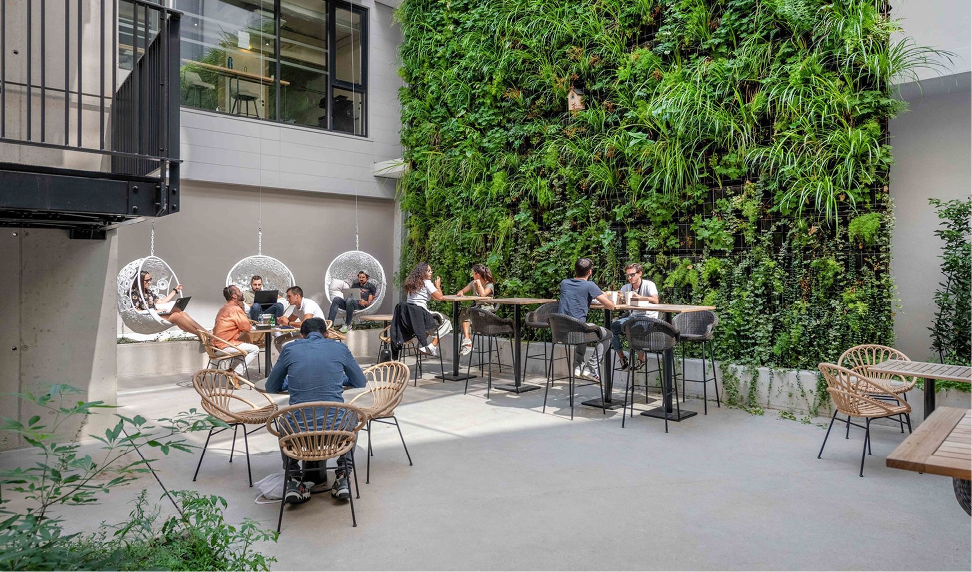 De plus en plus de structures sont construites avec des terrasses notamment pour les pauses et les déjeuners des collaborateurs. L’aménagement de vos extérieurs se fait avec du mobilier spécialisé outdoor, composé de matériaux durables tels que le bois, la corde, le métal ou encore le polypropylène, le tout avec des touches végétales. Le but étant de recréer un espace chaleureux « comme à la maison ». En bref, l’aménagement outdoor améliore le bien-être des salariés et vous permet de renforcer votre image de marque et attirer les futurs talents ! D’ailleurs, d’après plusieurs études, la proximité avec la nature améliorerait la performance des salariés de bureaux et réduirait l’absentéisme de 10%, ce qui n’est pas négligeable aujourd’hui !