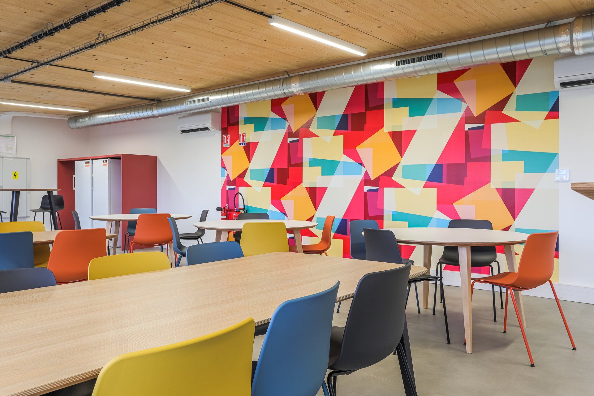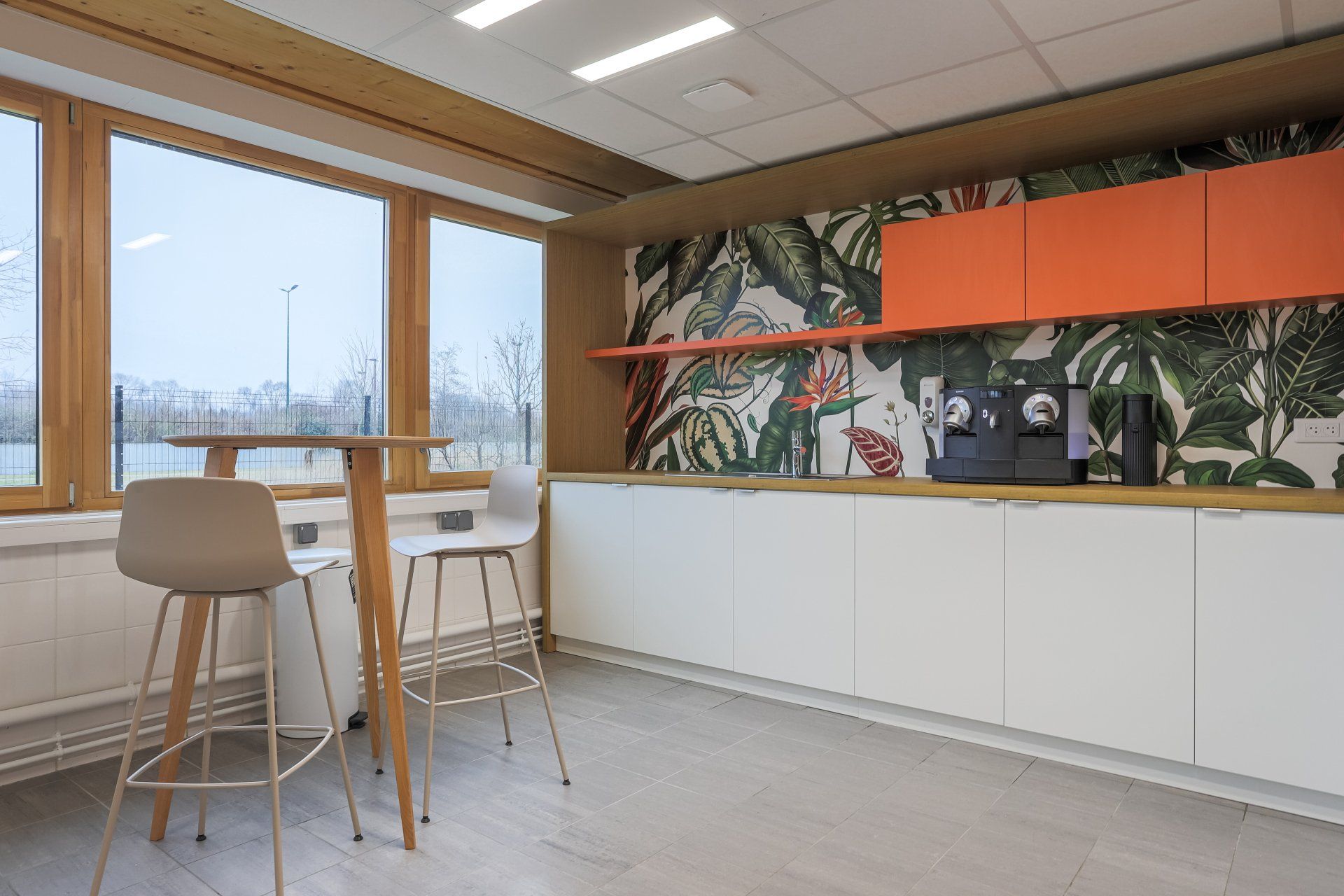 Notre équipe d'aménagement d'espace intérieur a récemment réalisé un projet de redynamisation des espaces communs au sein d'une entreprise située à Villeneuve d'Ascq. L'objectif principal était de transformer les salles de déjeuner et les espaces de détente en des environnements accueillants, inspirants et fonctionnels. Dans cette réalisation, nous avons opté pour une approche créative mettant en valeur l'utilisation du papier peint coloré et des codes couleurs associés au mobilier, créant ainsi des espaces distincts et agréables à vivre.